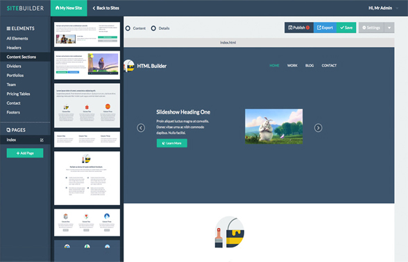 Both! SiteBuilder comes with an intuitive drag&drop page builder which allows you to put page and entire sites together swiftly. Combined with it's built-in publishing feature, SiteBuilder can also be used as a basic CMS where you edit your site through SiteBuilder and them publish them online.